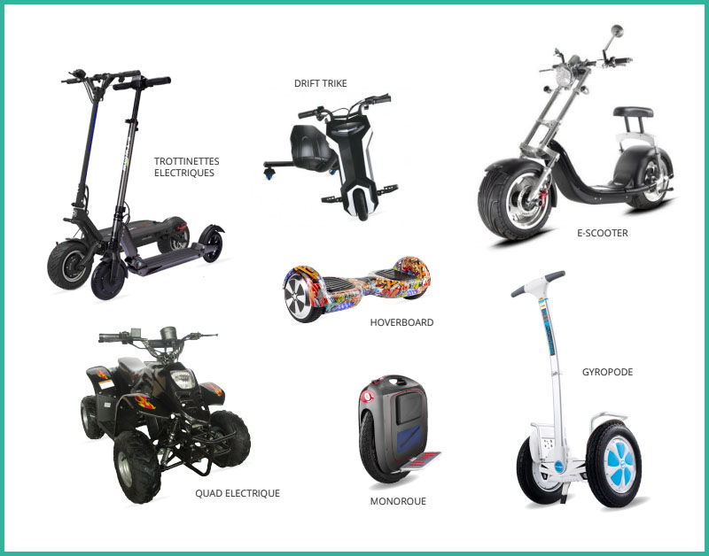 Machines : drift trike, hoverboard, trottinettes électriques, gyropodes, quad électriques,