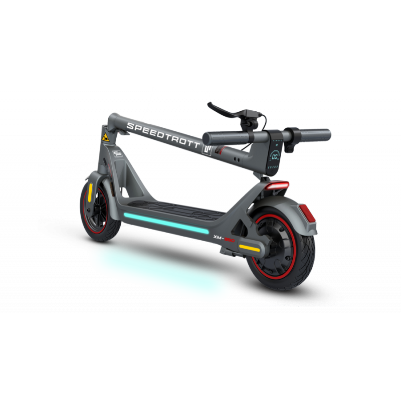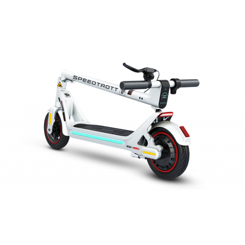 Cette trottinette électrique a tout pour séduire quiconque circulant en ville, ou se déplaçant quotidiennement en utilisant différents modes de transport (trains, bus, voiture etc.). Son encombrement est notamment optimisé grâce au verrouillage du manche une fois la trottinette électrique XM-350 repliée. Légère et pouvant facilement être portée avec un seul bras, même dans les escaliers conduisant au 4ème étage la transporter sera un jeu d’enfant.