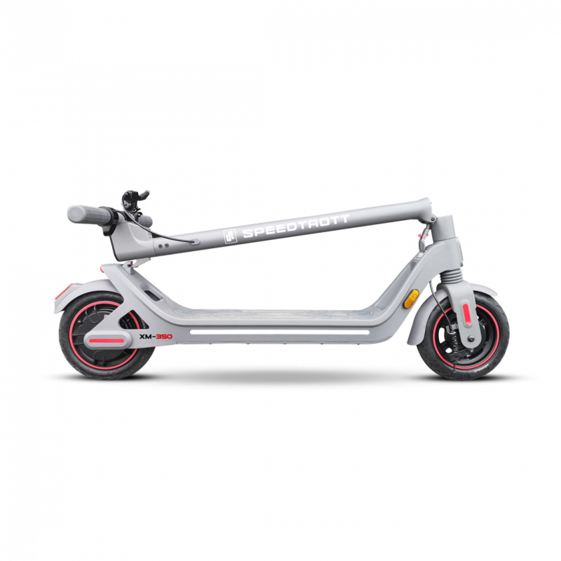 Cette trottinette électrique a tout pour séduire quiconque circulant en ville, ou se déplaçant quotidiennement en utilisant différents modes de transport (trains, bus, voiture etc.). Son encombrement est notamment optimisé grâce au verrouillage du manche une fois la trottinette électrique XM-350 repliée. Légère et pouvant facilement être portée avec un seul bras, même dans les escaliers conduisant au 4ème étage la transporter sera un jeu d’enfant.